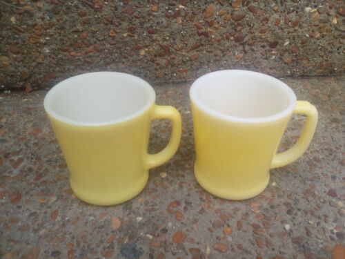Title (ebay affiliate link): 2 vintage Fire King Yellow D ring Handle Coffee Mug Cup set lot