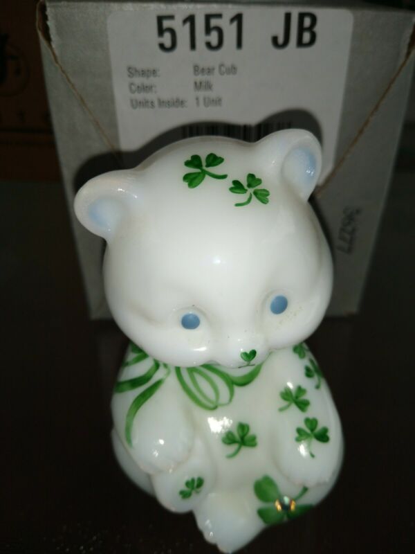 Title (ebay affiliate link): Fenton Milk colored Bearcub. Signed by F. Enoch. Irish Shamrock theme.