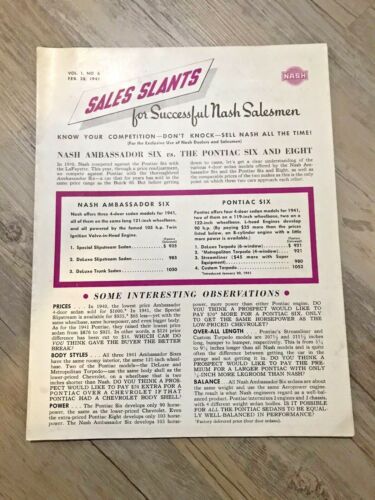 Title (ebay affiliate link): RARE 1941 NASH CAR DEALERSHIP SALESMAN SALES SLANTS TRAINING GUIDE MANUAL BOOK 6
