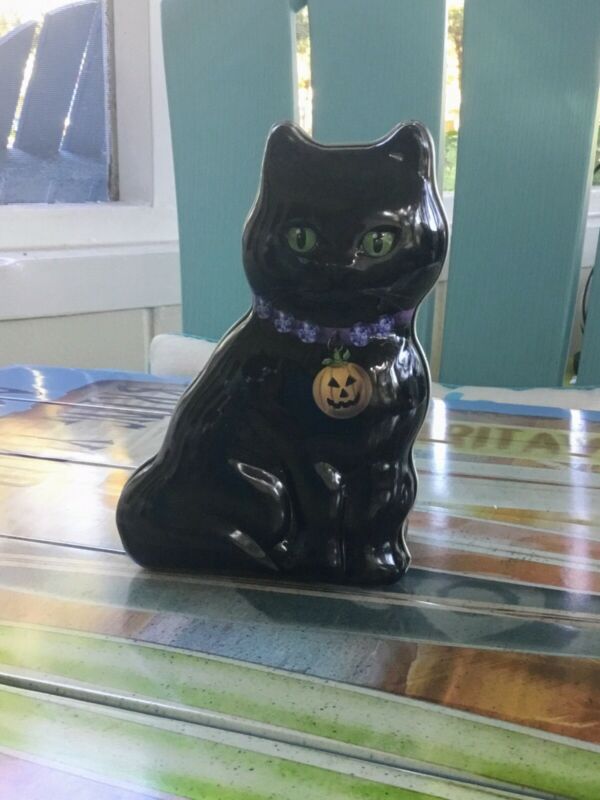 Title (ebay affiliate link): Vintage Tin Box - Halloween Black Cat Green Eyes By The Tin Box Company