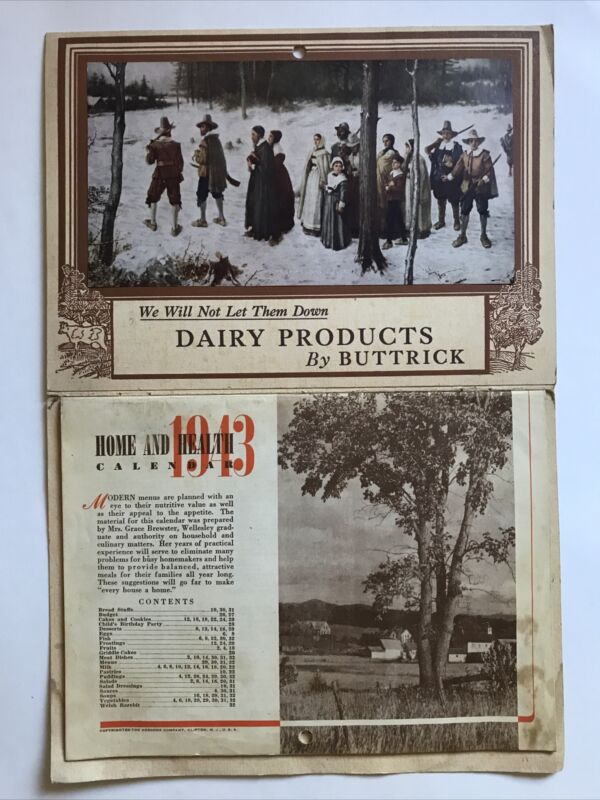 Title (ebay affiliate link): Vintage Home Health Buttrick Dairy Products Calendar 1943 WWII