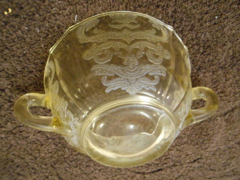 Title (ebay affiliate link): Yellow, mission pattern depression glass sugar/compote bowl