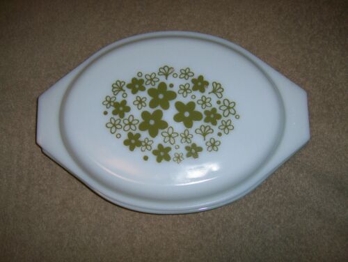 Vintage Pyrex Green Crazy Daisy 1 Qt Divided Casserole Dish with Lid