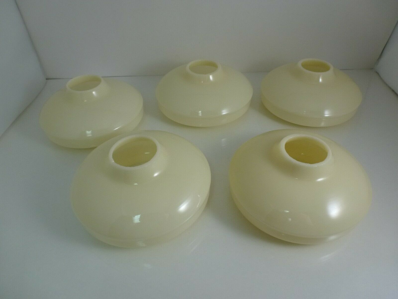 ANTIQUE CREAM IVORY SAUCER DISK MILK GLASS LAMP SHADES SET OF 5