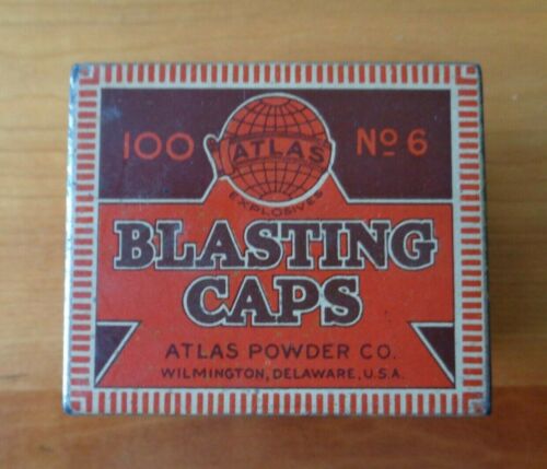 Title (ebay affiliate link): Vintage Blasting Caps Tin Atlas Powder Company Wilmington Delaware