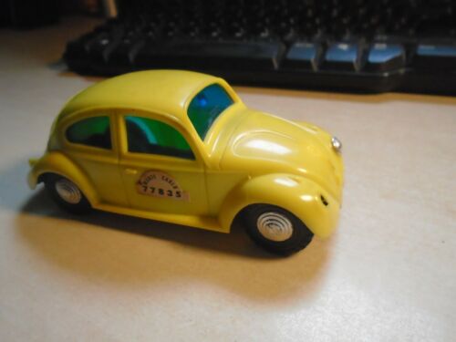 Title (ebay affiliate link): Vintage plastic friction drive VW Beetle monte carlo taxi. Blue Box. Hong Kong