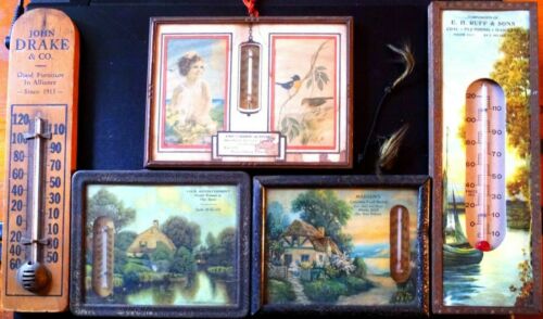 Title (ebay affiliate link): Vintage Original Five pictorial wall Thermometer Advertising Pieces