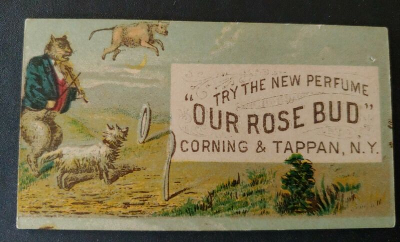 Title (ebay affiliate link): Trade Card NEW PERFUME "OUR ROSE BUD" BY CORNING &TAPPAN, NY - CAT W VIOLIN