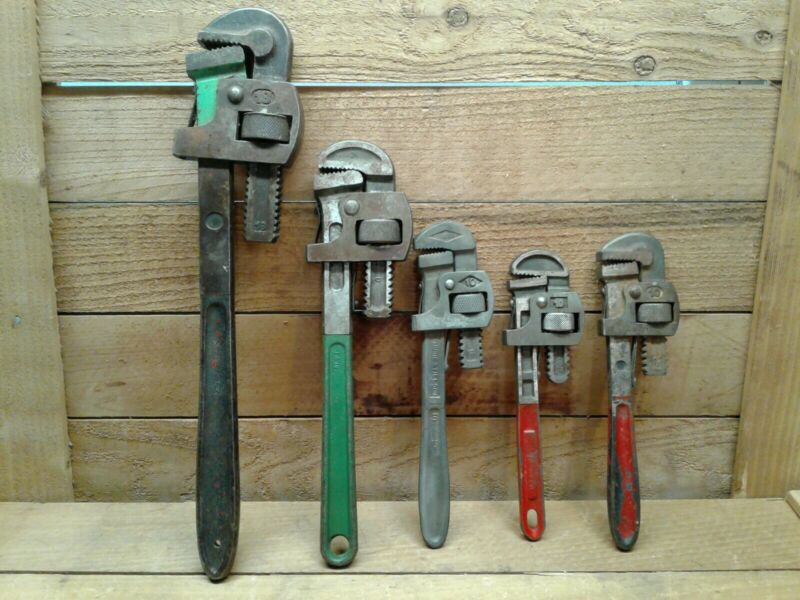 VINTAGE LOT OF 5 PIPE WRENCHES