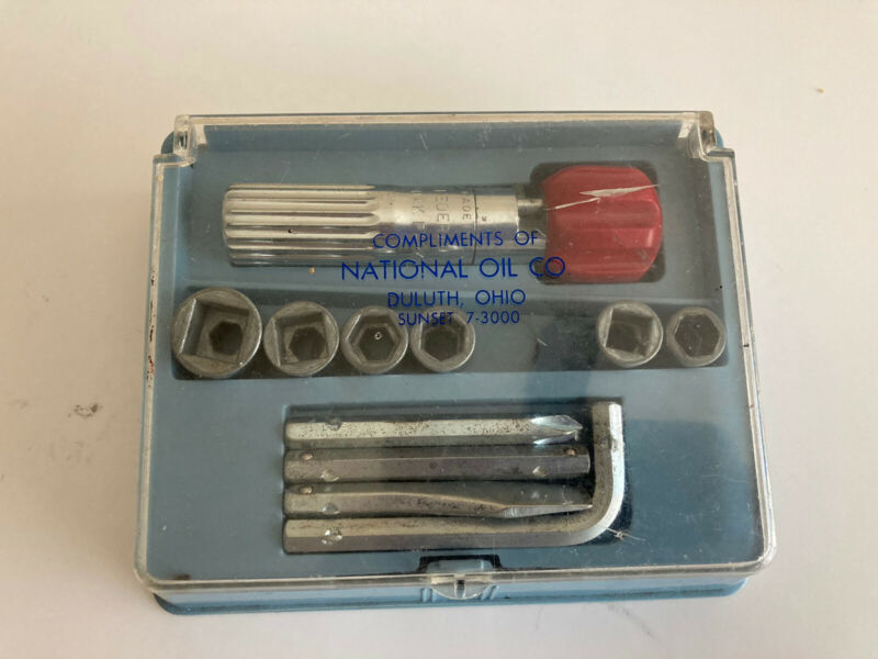 Title (ebay affiliate link): Vintage Mini Tool Set National Oil Co, Sockets, GE, Allen Key. Incomp. Duluth.