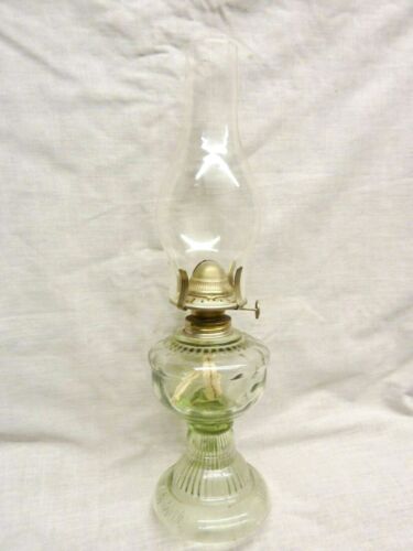 Title (ebay affiliate link): lovely vintage glass oil lamp made in china green glass long wick clear chimmney