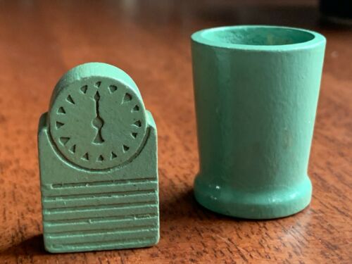 Renwal Strombecker GREEN CLOCK & WASTEBASKET Wooden Dollhouse Furniture