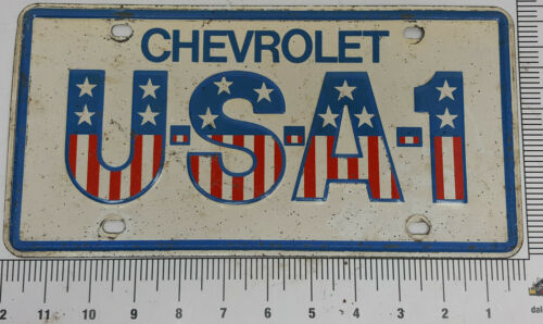 Title (ebay affiliate link): Original made of steel USA-1 Chevrolet front license plate tag not a knock off