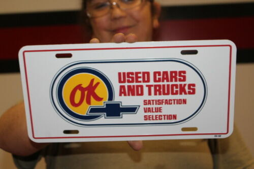 Title (ebay affiliate link): Chevrolet OK Used Cars & Trucks Gas Oil Embossed Metal License Plate Sign