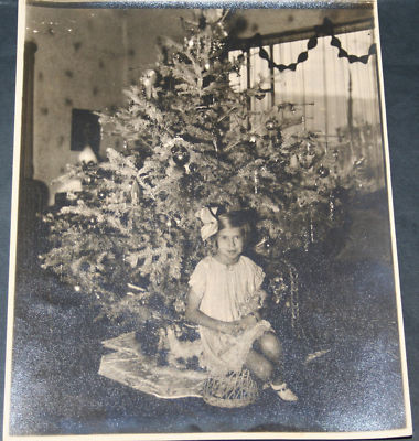 Title (ebay affiliate link): Real Photo Xmas Scene. Tree, Spun Glass, Paper Orns.
