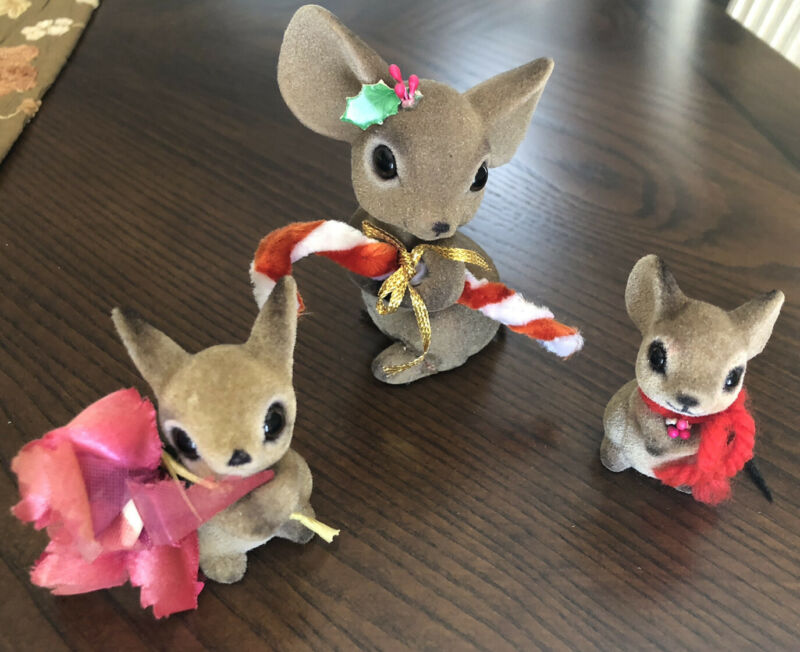 Title (ebay affiliate link): Vintage Christmas Josef Originals Flocked Mice Figurines SET OF 3
