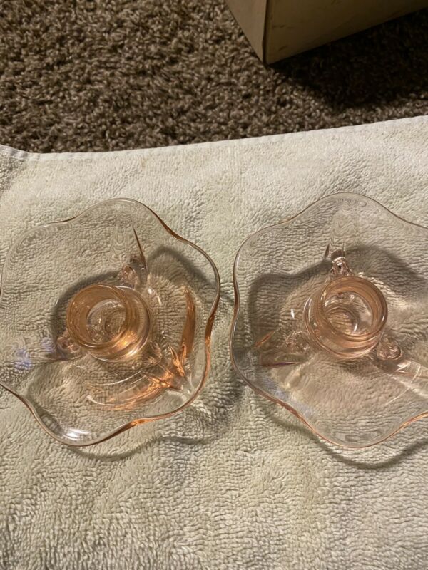 Title (ebay affiliate link): Vintage Pink Depression glass set of candleholders
