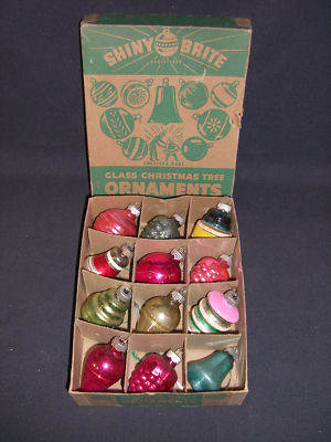 Title (ebay affiliate link): 12 Shiny Brite Christmas Ornaments Mica Bell Grapes Box