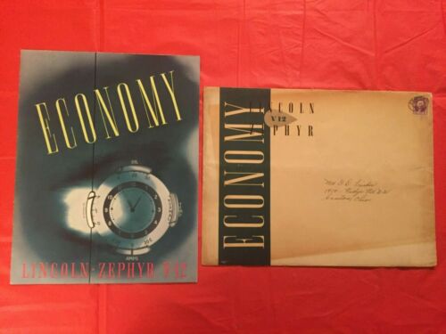 LOT 1936 Lincoln "ZEPHYT V-12" Car Dealer Showroom Sales Brochure + Envelope