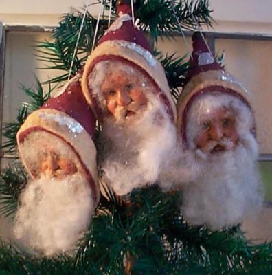 3 VINTAGE LOOK SANTA HEAD CHRISTMAS ORNAMENTS BY VONI