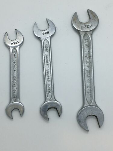 Vintage Drop Forged Select Steel Open End Wrenches, P727, P25, P723, USA (3pc)