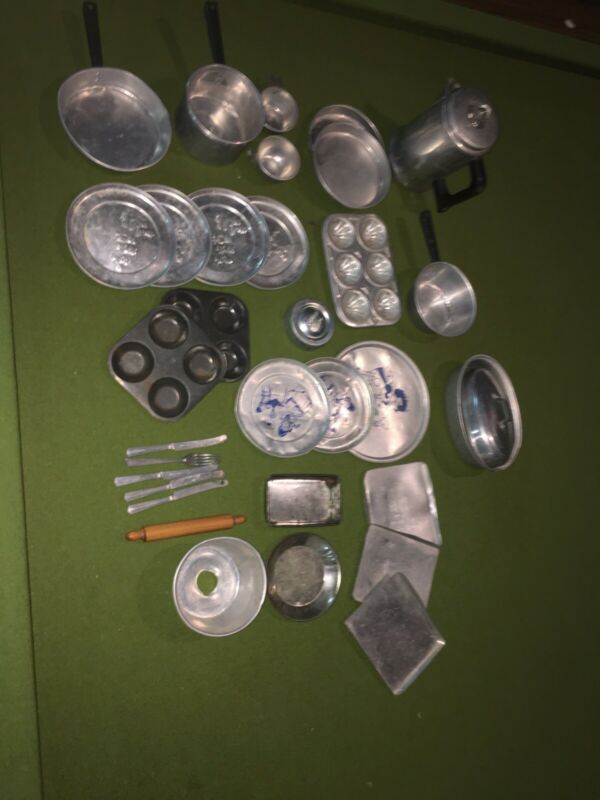 Lot Of Vintage Aluminum Childrens Dishes And Cook Ware