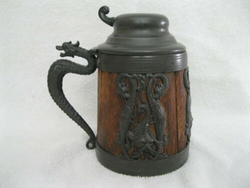 Title (ebay affiliate link): St. Louis Silver Co. Beer Stein .5L, Oak Wood, Dragon Handle