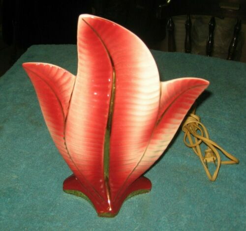 Title (ebay affiliate link): Vintage Working ESCO-LITE TV TABLE LAMP~3 Red White Leaves w Gold Trim~Stock mm