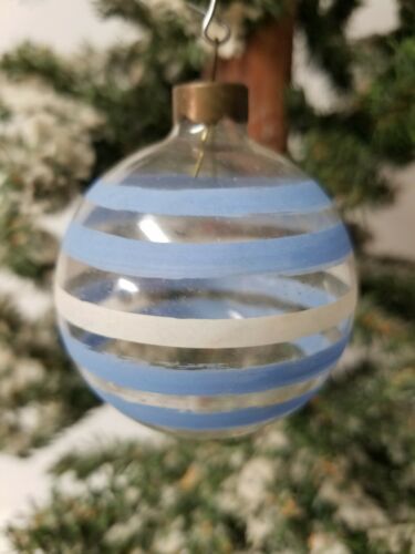 Title (ebay affiliate link): Vintage WWII Era Unsilvered Clear Blue & White Striped Christmas Ornament USA