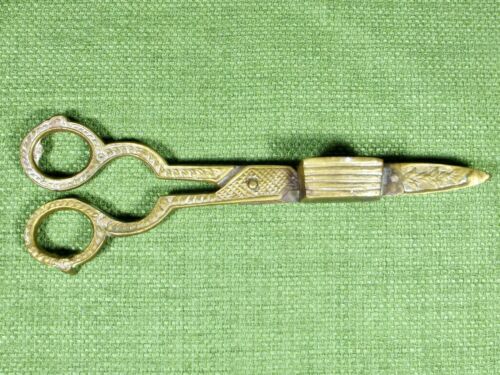 Antique / Vintage Ornate Brass Candle Snuffer / Wick Cutter Scissors Style