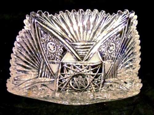 Vintage CUT GLASS CRYSTAL Square Bowl Miters Hobstar Fanning