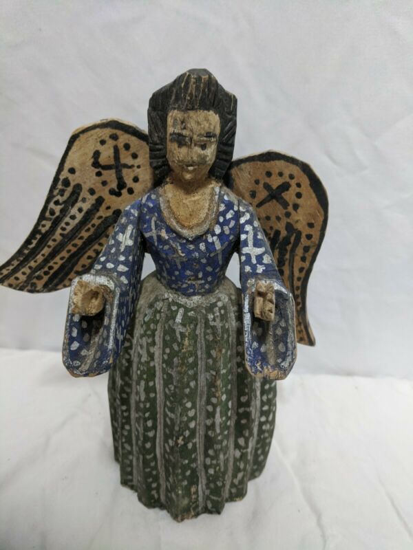 Title (ebay affiliate link): Mexican carved wood primitive angel vintage old folk art Mexico Santos