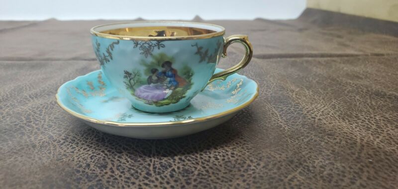 Vintage PWB Bavaria Blue Gold Trim Tea Cup & Saucer Miniature Set