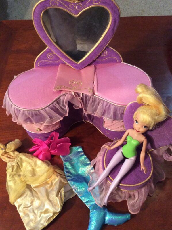 Title (ebay affiliate link): VTG Barbie Disney Lot #17: 2003 Belle Dress/Vanity/Seat-2009 Tinkerbell-Mermaid