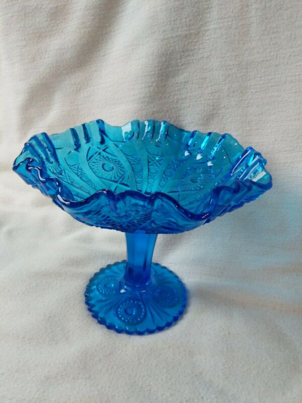 Title (ebay affiliate link): Vintage Bright Blue Glass Pedestal Candy Bowl Dish Flower Bowl