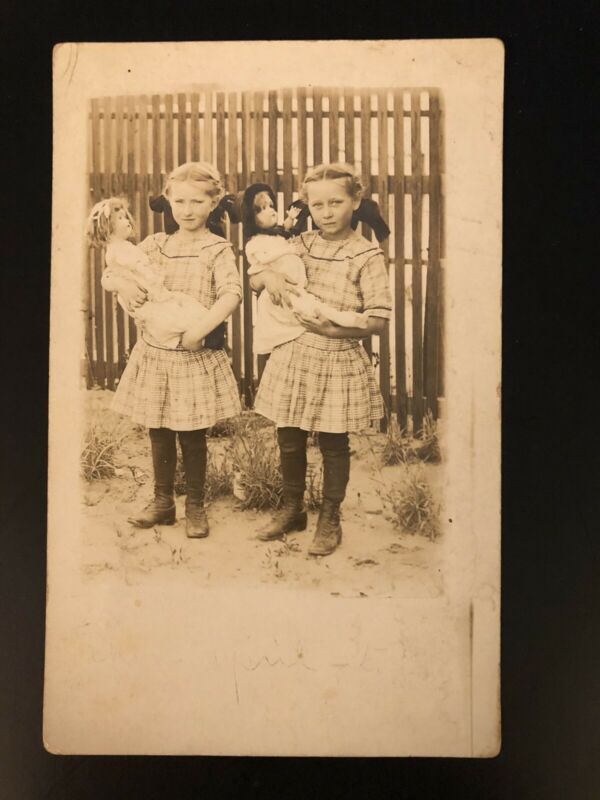 Title (ebay affiliate link): RPPC Twins ? Girls Dressed Alike Holding Dolls 1904-1918 AZO