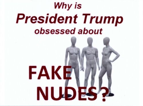 POSTCARD POLITICAL HUMOR WHY IS PRESIDENT TRUMP OBSESSED ABOUT FAKE NUDES?