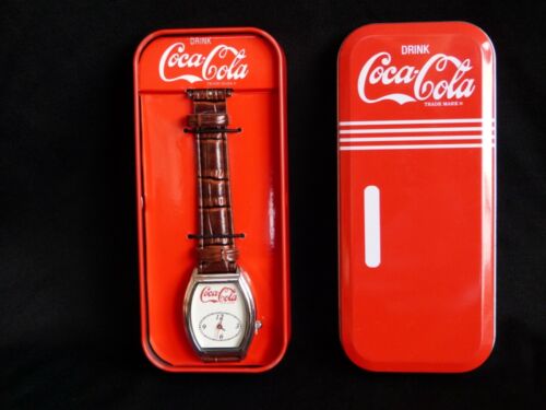 New - Collectible Coca Cola Analog Watch in Tin, Vintage Face Design Script Logo