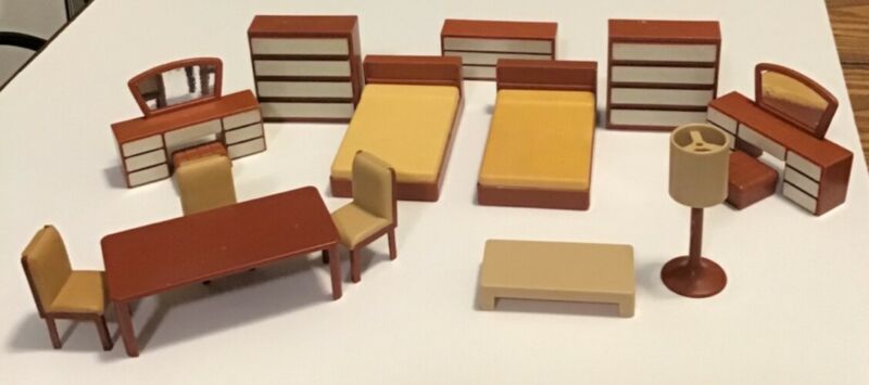 Title (ebay affiliate link): 15 PIECE LOT of 1970s Arco Miniature Dollhouse Bedroom, Dining Room Furniture NR