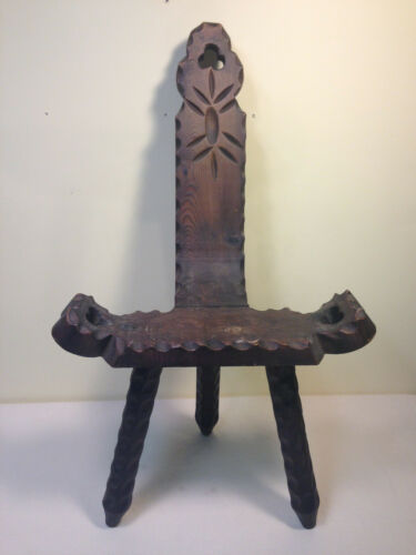 Title (ebay affiliate link): Antique Primitive Birthing Chair Wood Milking Stool Folk Art 3 Legged