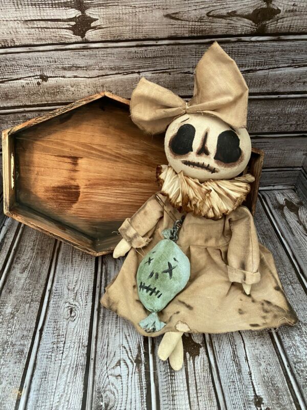 Primitive Little Skeleton Doll With Shrunken Head ~ Halloween ~