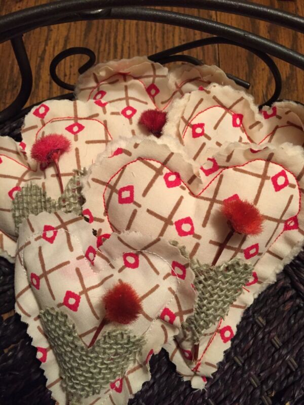Primitive Heart Christmas Tree Ornaments Bowl Fillers Ornie Cupboard Farmhouse