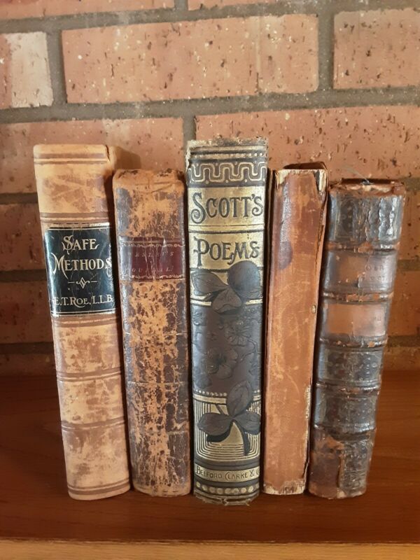 Title (ebay affiliate link): 5 Brown Spined Vintage Books For Decorating, Staging, Props