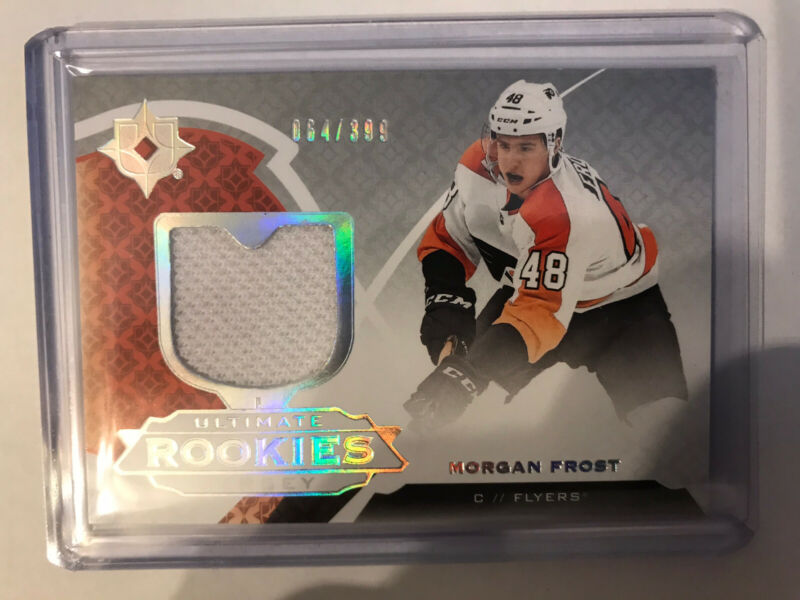 Title (ebay affiliate link): 2019-20 Upper Deck Ultimate Morgan Frost RC Rookie Jersey #064/399