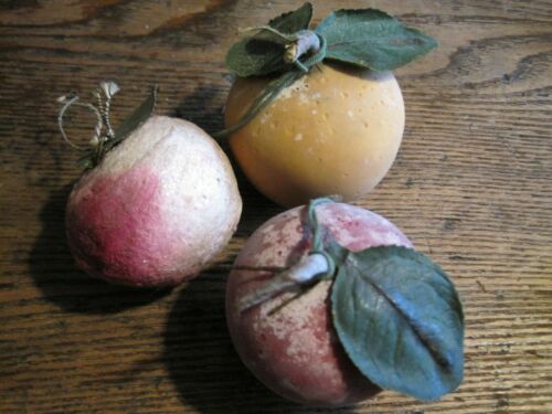 VTG Spun Cotton LOT OF 3 FRUIT CHRISTMAS ORNAMENTS-RUSSIAN?