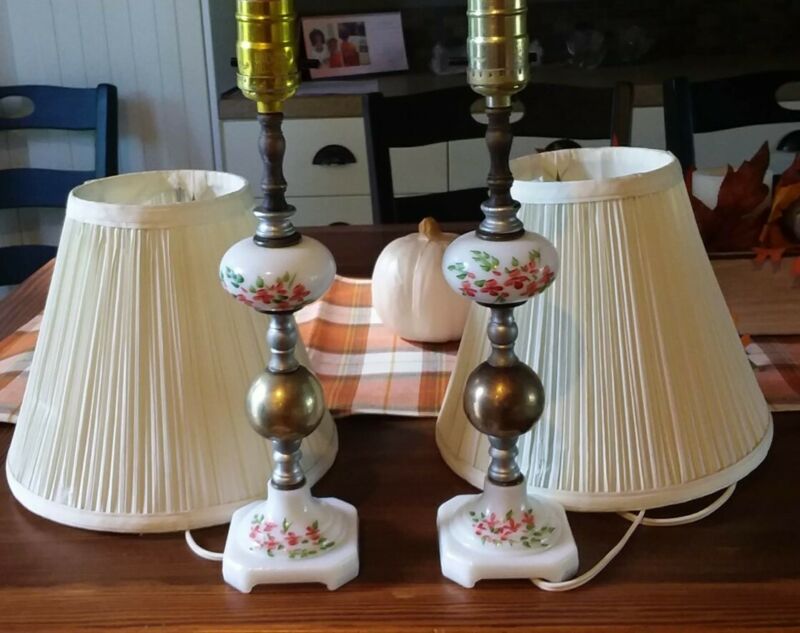 Pair Of Vintage Milkglass Floral Base Table Lamps