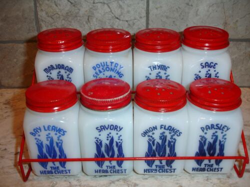 Tipp milk glass herb chest spice shakers not McKee Tipp Hazel Atlas Hocking