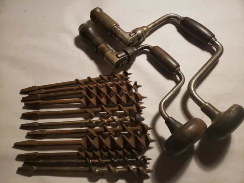 Title (ebay affiliate link): Lot of Antique Vintage Woodworking Tools 2 Brace Drills, Brace Bits , Carpentry