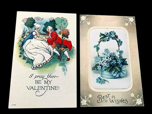 Holiday Greetings Postcard Lot (2) Valentine Victorian Couple and Floral