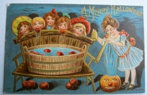 Title (ebay affiliate link): EMBOSSED-P. SANDERS-CHILDREN BOBBING FOR APPLES-JOL, PUB. 1909